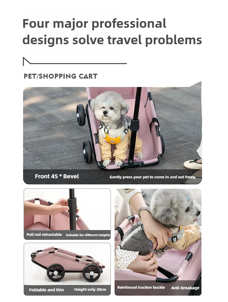 Four professional designs to solve travel problems1. The front part is at a 45 ° oblique angle, gently press it, and the pet can enter and exit freely.